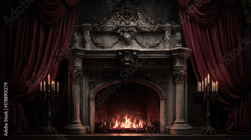 © reiyu, Fototapeta premium 石造りの暖炉とキャンドル
