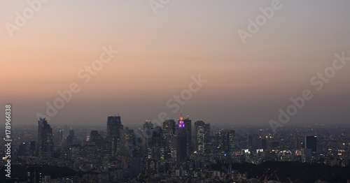 Fototapeta premium 日本の東京都市風景・夜景「新宿区の高層ビル群などを望む」