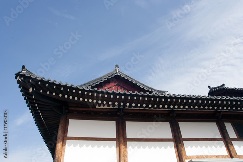 © JIHYUN, Fototapeta premium 파란하늘을 배경으로 한 기와지붕, 경주, 대한민국