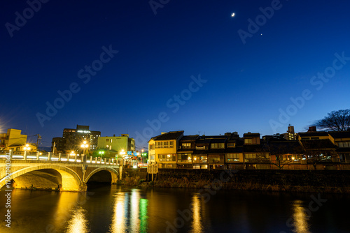 Fototapeta premium 夜景が美しい金沢 ライトアップされた浅野川大橋