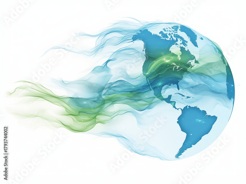 Fototapeta premium 地球と緑のエネルギーの流れのイラスト