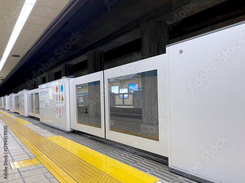 Fototapeta premium 地下鉄ホームドア・安全設備のあるプラットフォーム