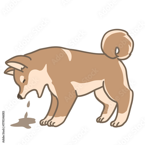 Fototapeta premium 吐き戻しをする柴犬のシンプルイラスト