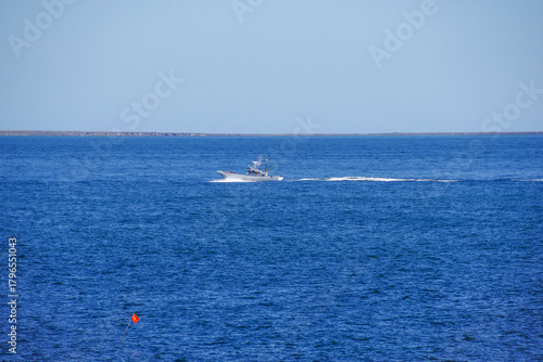 Obraz premium 納沙布岬と歯舞諸島の間を行く漁船