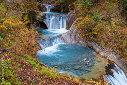 © Umibozze, Obraz premium 紅葉の西沢渓谷七ツ釜五段の滝