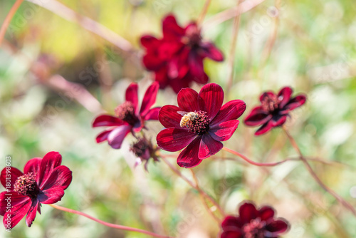 Fototapeta premium 秋のチョコレートコスモスで蜜を集めるミツバチ
