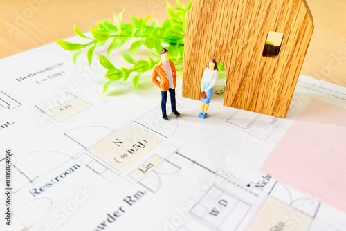 © 78art, Naklejka premium マイホームの間取りを考える夫婦