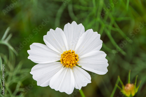 © Kazutaka, Obraz premium 真上から見た白いコスモスの花のクローズアップ