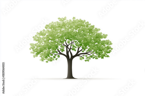 Obraz premium 緑の葉が茂る木のイラスト(白背景)