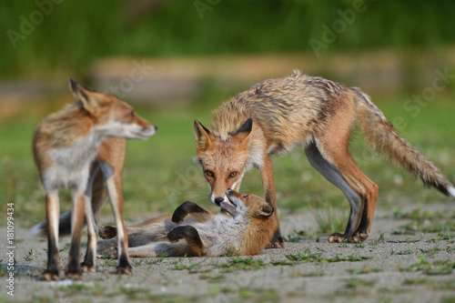 © mihiro_wildlife, Fototapeta premium キタキツネの家族