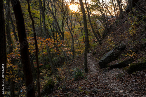 Obraz premium 日没間近の福島県・滝川渓谷の秋の登山道