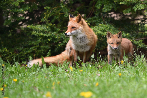 © mihiro_wildlife, Fototapeta premium キタキツネの親子