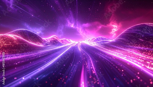 © LuckyStride, Fototapeta premium 紫とピンクの光の波が舞う空間