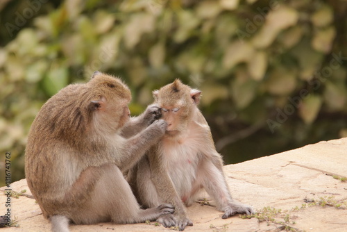 © rokacaptain, Fototapeta premium 털 고르고 이 잡아주는 잉꼬부부같이 사이좋은 원숭이, 긴꼬리 원숭이, 태국 방센 카오삼묵