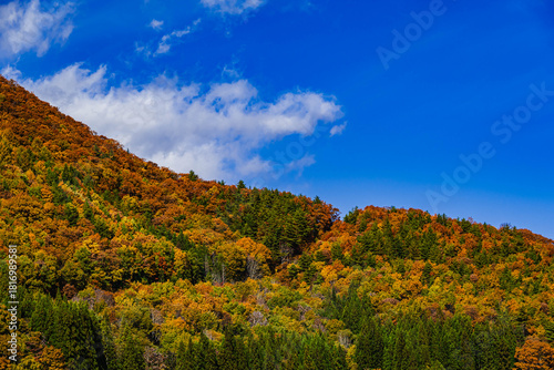 © kikisora, Fototapeta premium 青空バックに映える紅葉の山