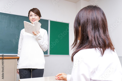 © maroke, Fototapeta premium 本を持って授業をする女性教師