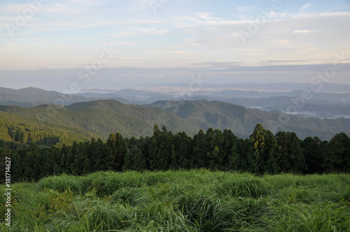 Obraz premium 夕暮れの山々 山頂からの眺望 雄大な景色 日の出 日の入り 山脈