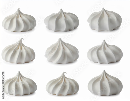 © mimi_mumu, Fototapeta premium いろいろな形のホイップクリームの素材 生クリーム 白背景 食品サンプル