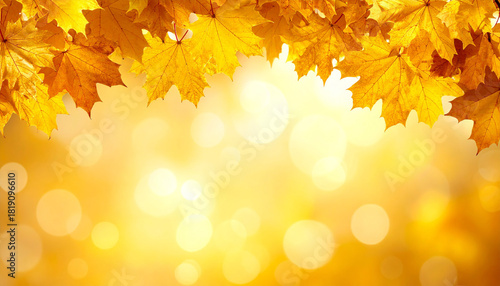 © LuckyStride, Fototapeta premium 黄金色の紅葉が敷き詰められた上部フレーム