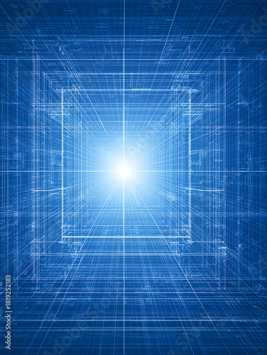© minorace, Obraz premium 光のトンネル:仮想空間サイバーの背景イメージ