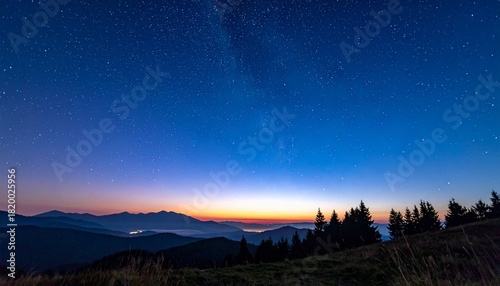 © ric, Fototapeta premium 星が瞬く夜空の光が広がるリラクゼーション夜景背景