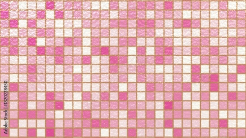 © MikanStock, Fototapeta premium きらめくピンクグラデーションのモザイクタイルパターン背景