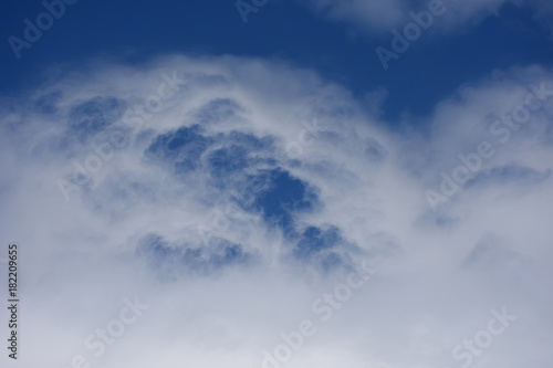 Fototapeta premium 青空と雲「空想・雲のモンスターたち(モンスターたちが、まやもやと現れはじめたイメージなど)」(渦巻く嫉妬、もやもやした気持ち、渦巻く、気持ちが落ち着かいないなどのイメージ)