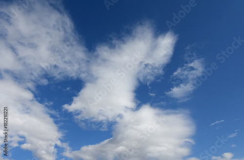 Fototapeta premium 青空と雲「空想・雲のモンスターたち」(思い思いの方向を見る、方向が定まらない、様々な思い、思惑、思いを巡らすなどのイメージなど)