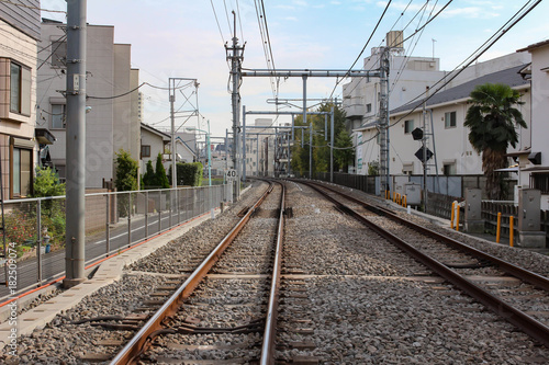 © c11yg, Fototapeta premium 街を走る電車の線路