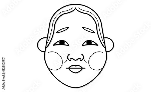 © IEPPEI, Obraz premium 和風イラスト・おかめのモノクロイラストアイコン線画