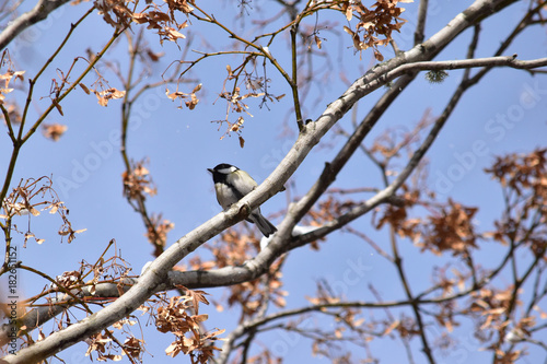 Obraz premium 枯れたモミジに止まるシジュウカラ
