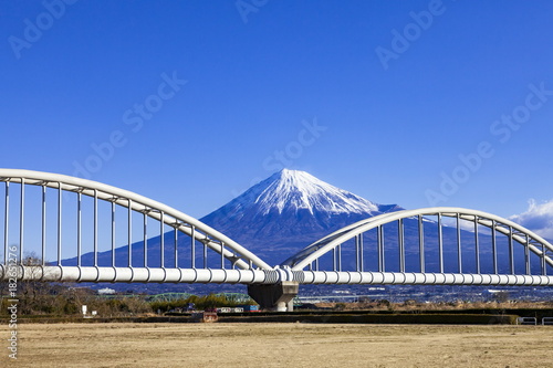 © photop5, Obraz premium 富士山と水管橋、静岡県富士市富士川河川敷にて