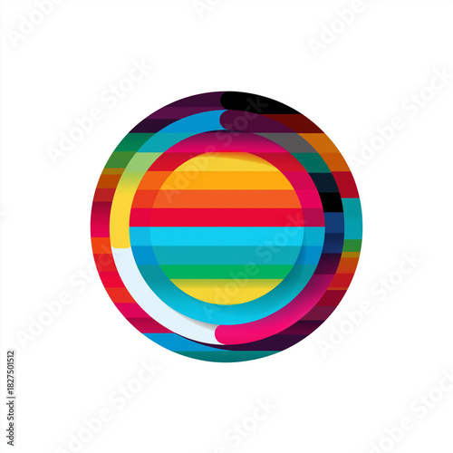 © 963k, Obraz premium 青、赤、黄色の曲線が交差する立体丸型デザイン、モダン、クリエイティブ、テクノロジー、デジタルアート、アイコン、ロゴテンプレート、ビジュアル素材