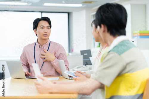 Obraz premium オフィスで会議をする若いエンジニア