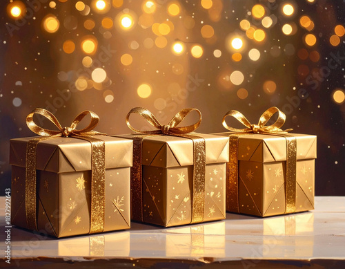 Obraz premium 年末年始の祝いに映える華やかなギフトボックス背景