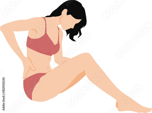 Obraz premium 下着を着た女性が腰痛で腰に手を当てているイラスト