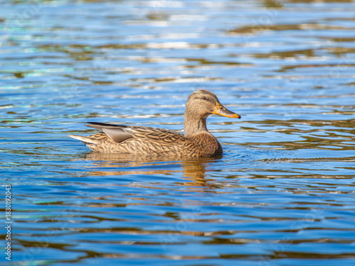 Fototapeta premium 池を泳ぐマガモのオスとメス