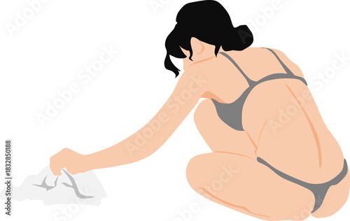 © くろねこ, Fototapeta premium 雑巾がけをしている女性のイラスト