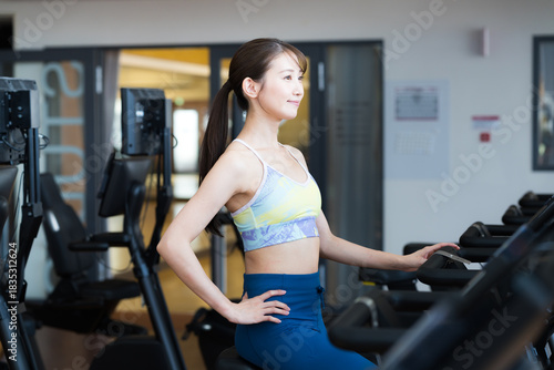 © wheeljack, Fototapeta premium スポーツジムでトレーニングする若い女性 撮影協力:スポーツクラブ&サウナスパ ルネサンス 幕張24