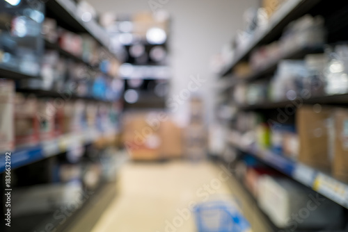 © hiro, Fototapeta premium リサイクルショップのデフォーカス背景 店内の通路と商品棚