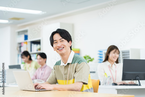 © pain au chocolat, Obraz premium オフィスで働く若いエンジニア