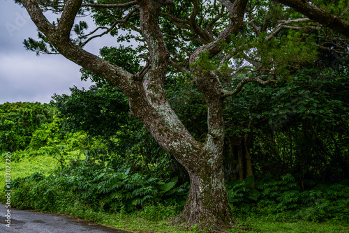 Obraz premium 雨上がりにたたずむ力強い木が印象的な石垣島の風景