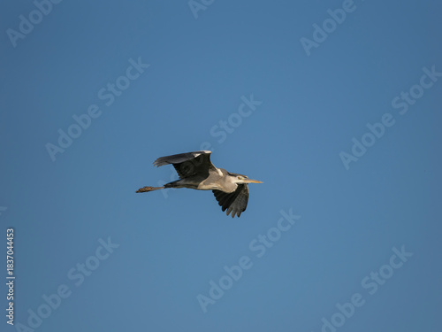 © しょこまろん, Fototapeta premium 青空を飛ぶアオサギ