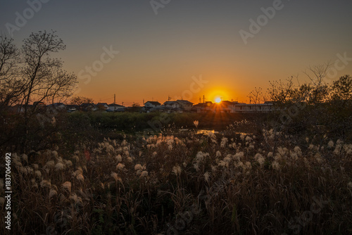 © 仁 藤原, Obraz premium 日本の岡山県岡山市の夕方の美しい風景