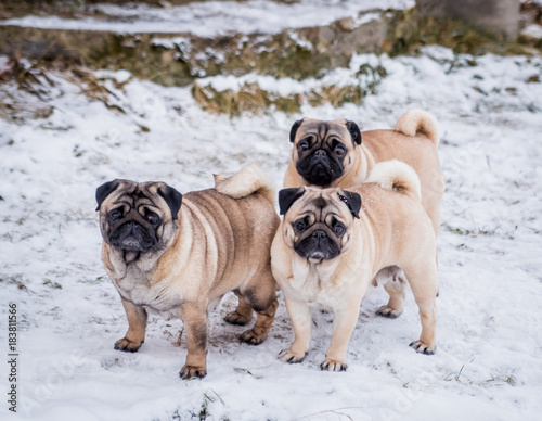 © tvetchinina, Obraz premium три друга вышли погулять по снегу