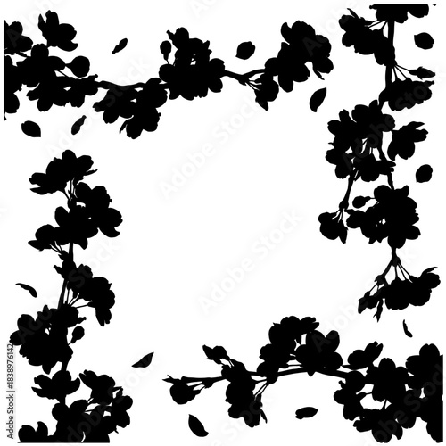 Naklejka premium さくらのフレーム⑮正方形_周囲_シルエット_黒