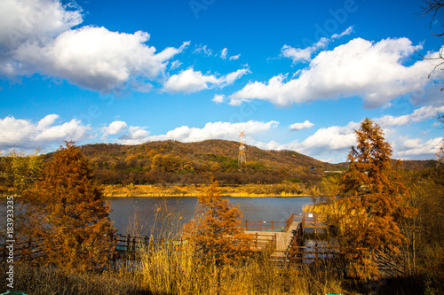 © 상표 홍, Fototapeta premium 호수와가을 하늘
