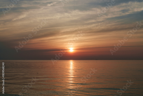 Obraz premium 黄金色に染まる水平線のサンセット風景