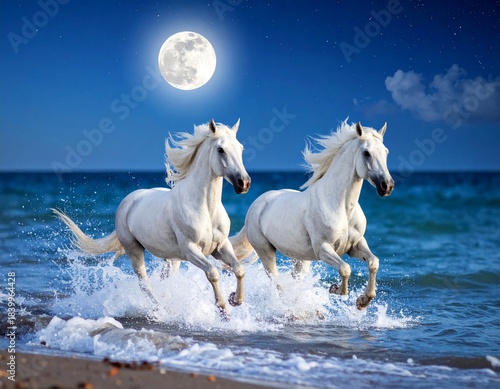 © 敦美 澤村, Obraz premium 海辺を走る馬