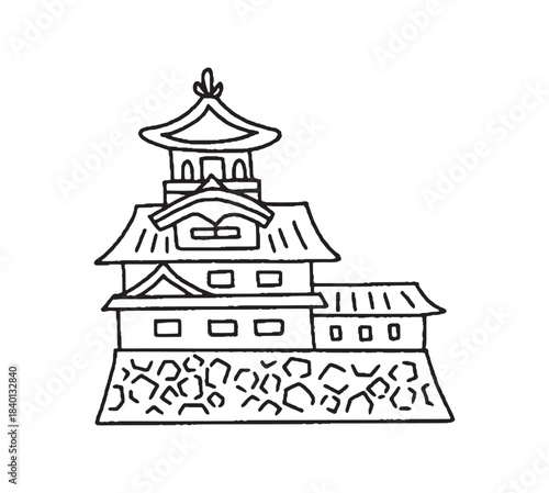 © ohashi, Fototapeta premium 富山城の手描きイラスト